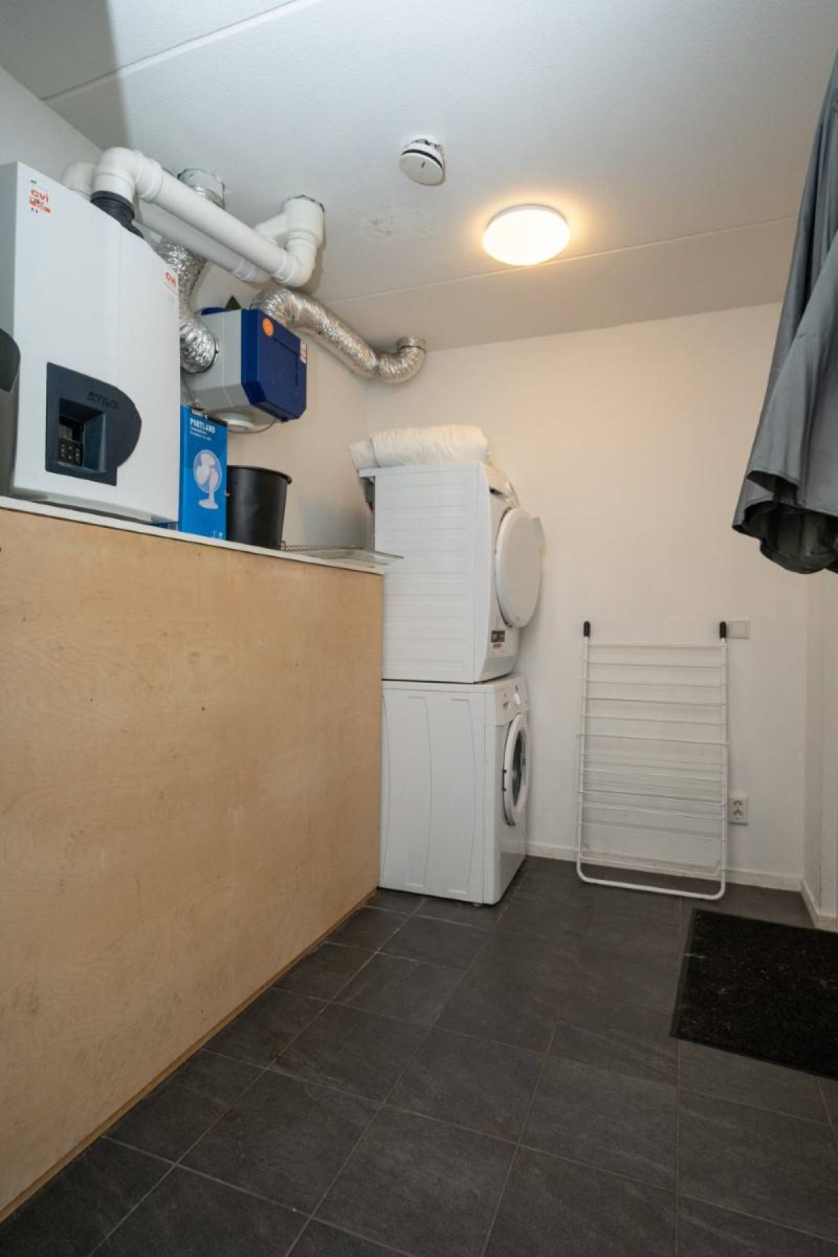 Via de hal bereikt u tevens de ruime berging waar zich de opstelplaats voor de wasmachine en droger bevinden alsmede de CV-ketel. De berging is ook buitenom bereikbaar.
