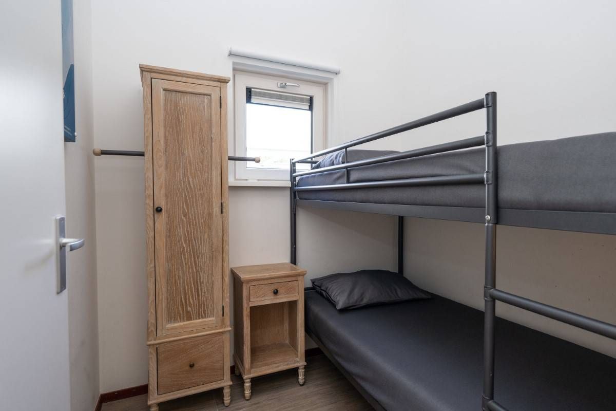 De derde slaapkamer is bereikbaar via de living. Deze slaapkamer is voorzien van een keurig stapelbed.