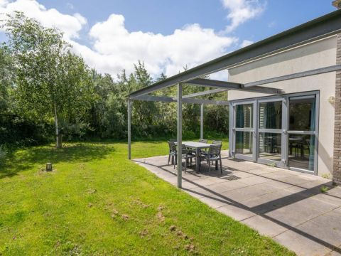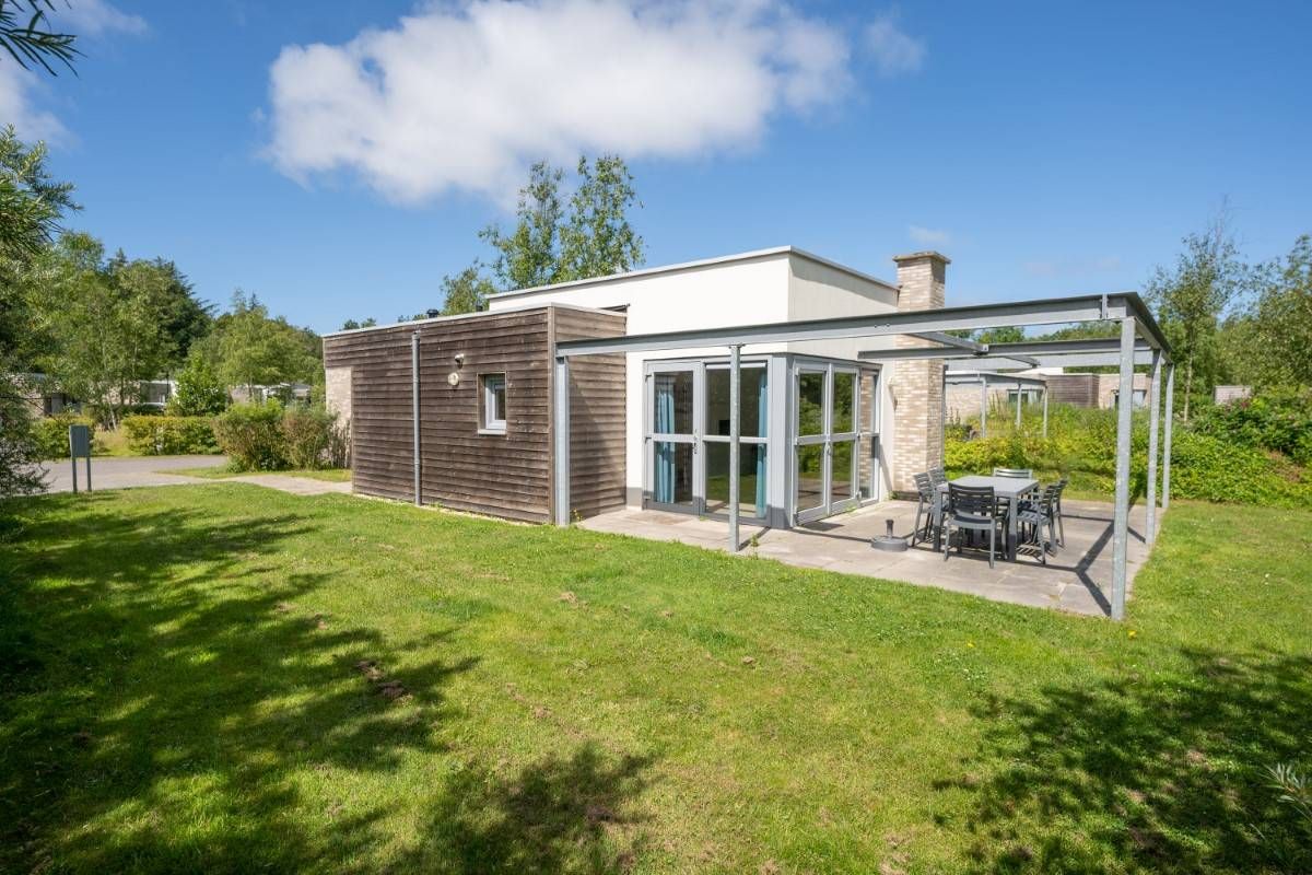 Gelegen op Kustpark Texel, nabij het dennenbos en de toeristische badplaats De Koog, staat deze moderne recreatiewoning (2015) op een hoekperceel eigen grond van 566 m².