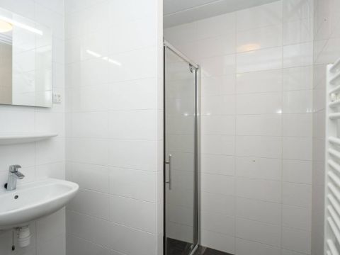 In de hal een tweede moderne badkamer welke is uitgerust met inloopdouche en een wastafel.